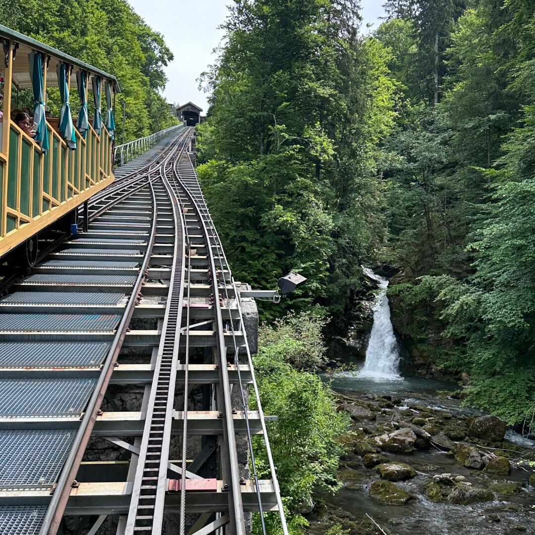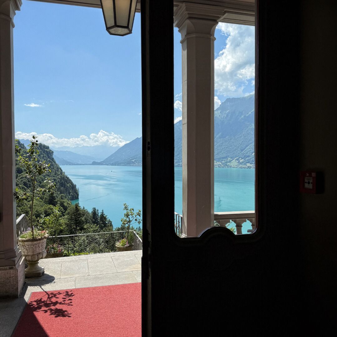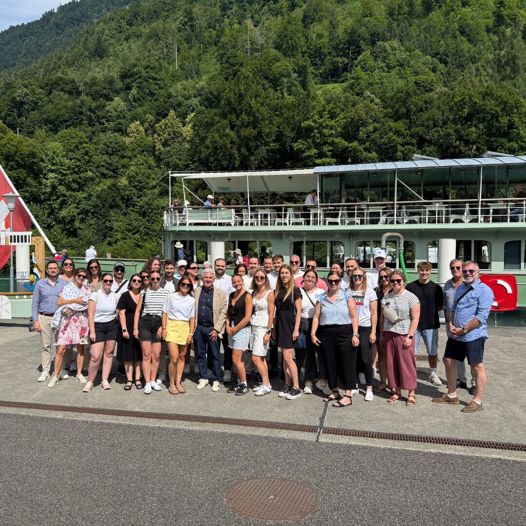 La traditionnelle sortie estivale a cette année conduit les collaborateurs au cœur de l’Oberland bernois. À l’arrivée à Interlaken, le lac de Brienz s’est offert comme une carte postale. Un majestueux bateau à vapeur – le Lötschberg, véritable témoin d’une autre époque – a emmené le groupe jusqu’à Giessbach, glissant paisiblement sur l’eau turquoise. Là, un funiculaire centenaire gravit la pente à travers la forêt. Tout en haut, perché face à la cascade, le Grandhotel Giessbach. Un lieu chargé d’histoire, qui a bien failli disparaître dans les années 1980.